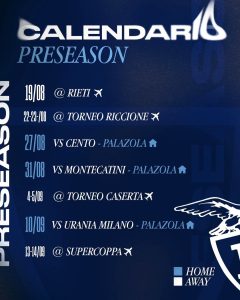 Si tornerà poi al Palazola per affrontare l’Urania Milano il 10 settembre e infine ci sarà la prima partita ufficiale, contro Rimini in Supercoppa il 13 settembre con sede ancora da ufficializzare.